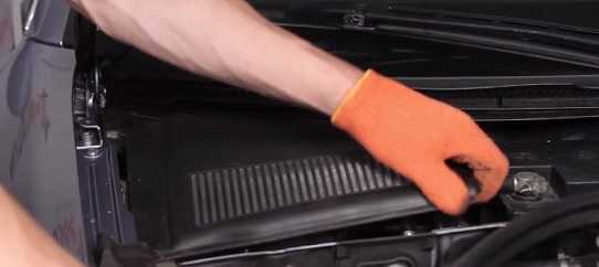 Открываем капот. Вытаскиваем защитный пластиковый кожух на жабо: