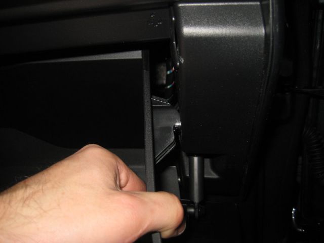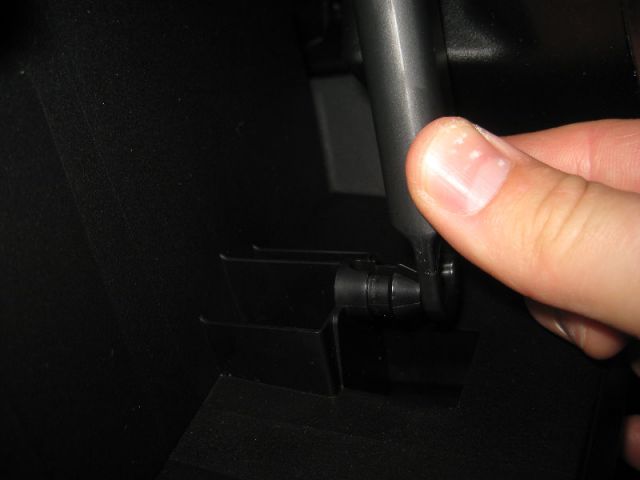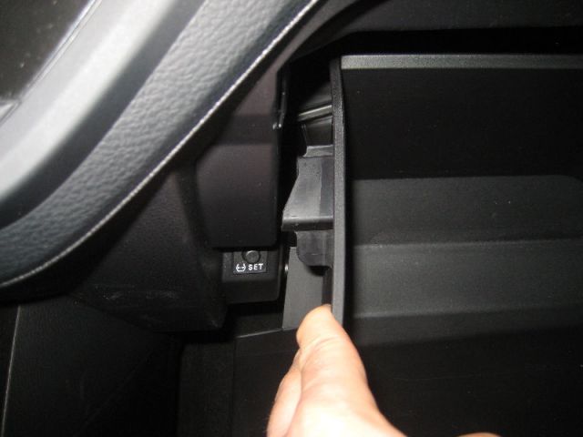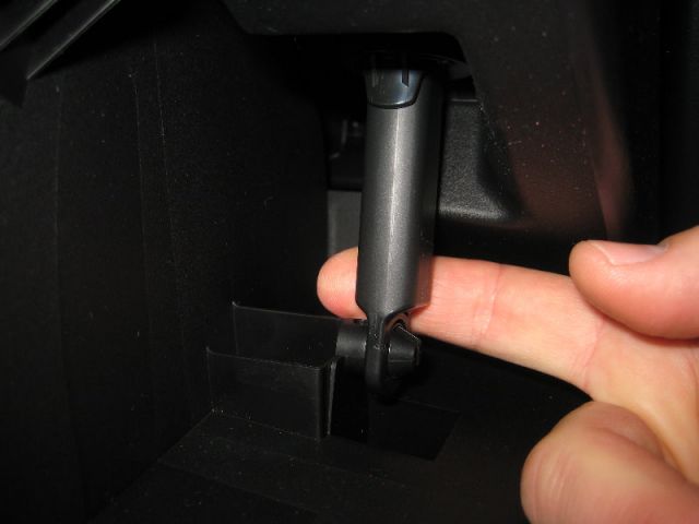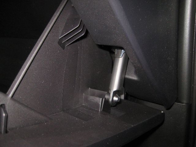 3. Нажмите в местах обозначенных на фото стрелками, потом нажмите на стенку бардачка, после этого фиксаторы должны разомкнуться.