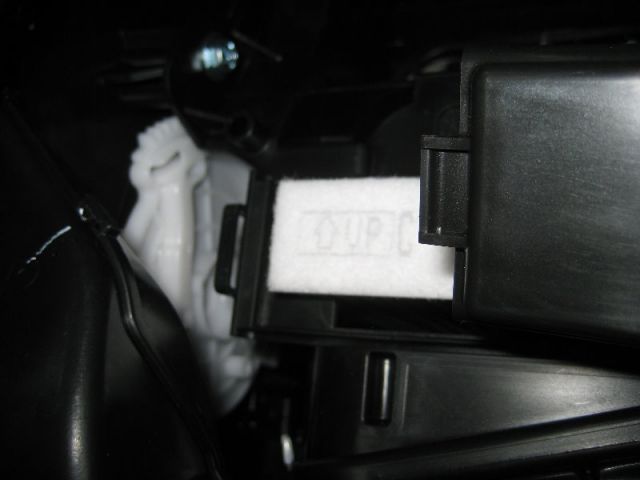 Затем почистить корпус, и вставить фильтр. Над тем, какой стороной устанавливать салонный фильтр, голову ломать не приходится. На панели фильтр и самом фильтре нарисованы стрелочки и написано «вверх» на английском. То есть, фильтр должен быть расположен таким образом, чтобы стрелочка смотрела вверх.