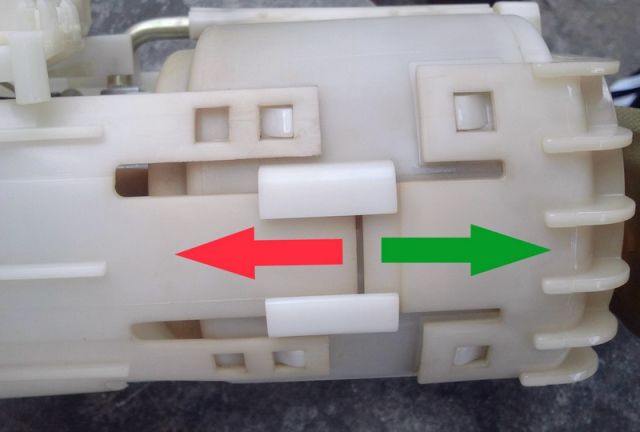 Сначала снимаем верхнюю часть, она идет тоже туго, я воспользовался двумя отвёртками по бокам в качестве рычагов. Затем снимаем низ вместе с бензонасосом. Ставим новый фильтр, собираем в обратном порядке как было.