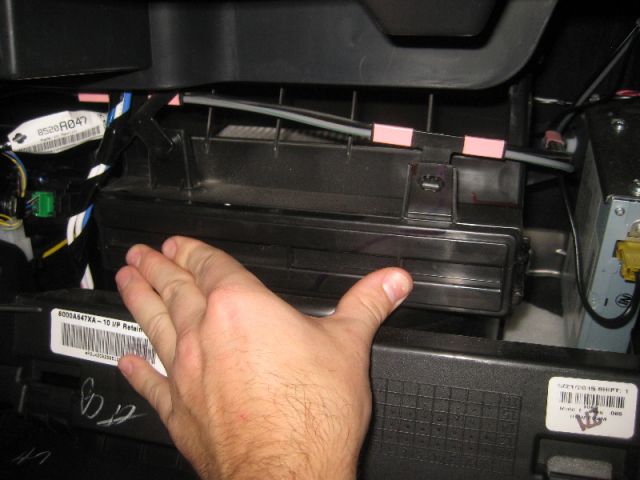 Снять бардачок с фиксаторов.