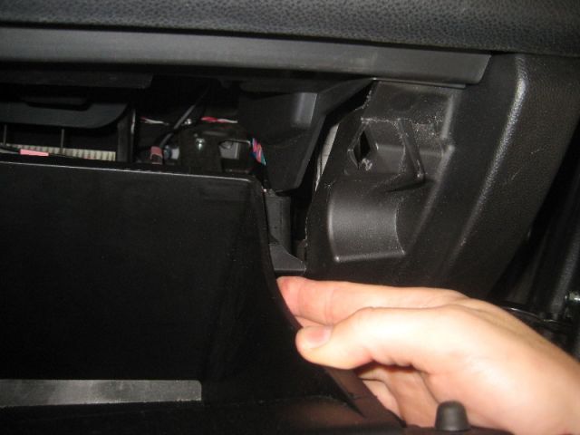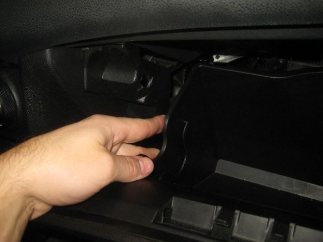 - С правой стороны от вас при открытом бардачке есть специальный ограничитель. Он отсоединяется простым движением ваших пальцев. Ничего откручивать или использовать инструмент не потребуется.
