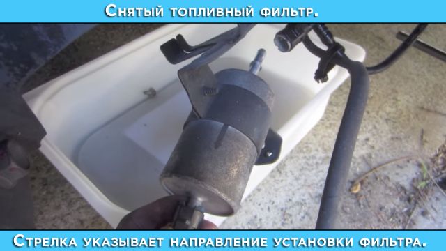 На топливном фильтре нарисована стрелка, которая указывает направление установки. Перед снятием старого фильтра стоит запомнить, куда она указывает, и установить новый фильтр также.