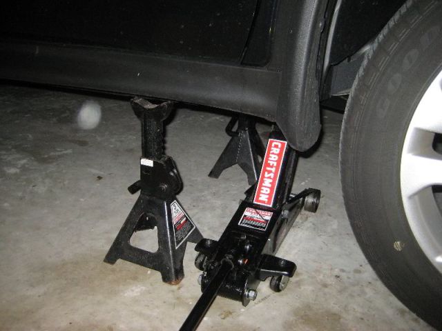 - Поднять авто (домкрат и упоры, яма, эстакада, пандус).