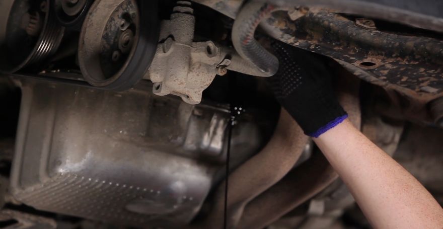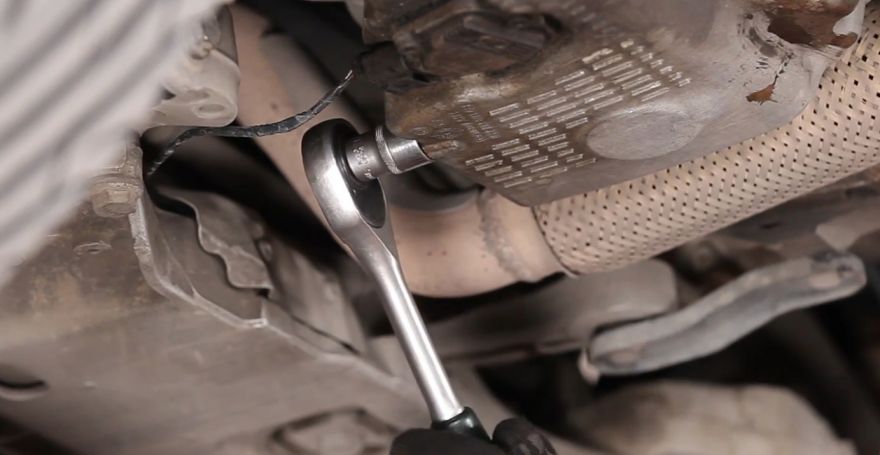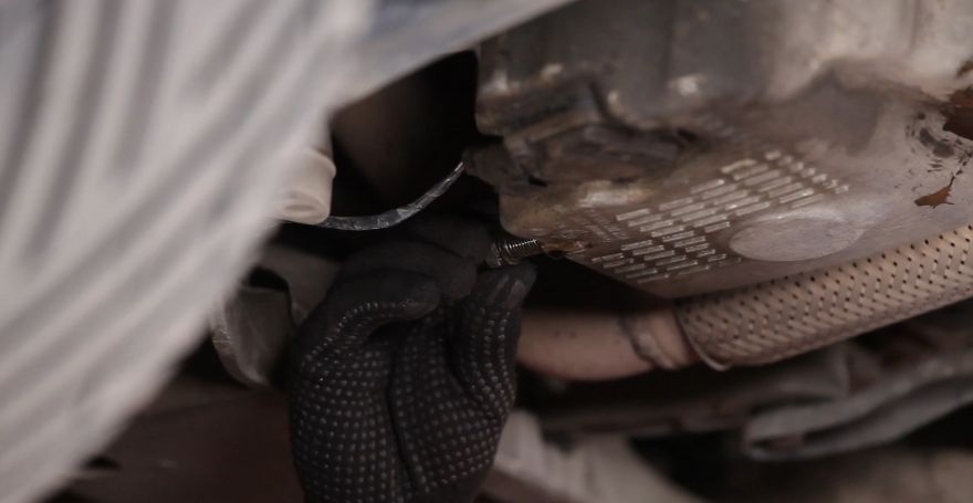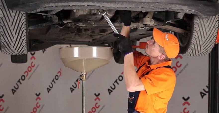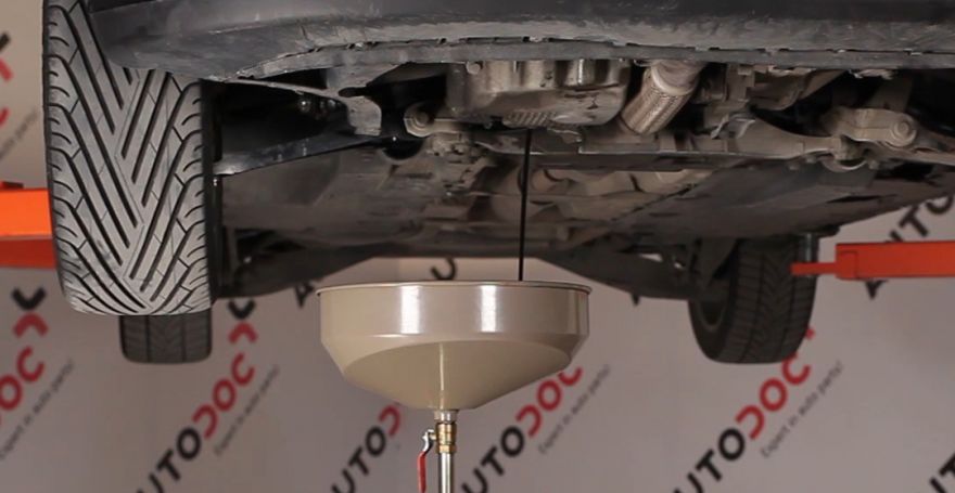 Сначала нужно ослабить сливную пробку, затем, помня, что масло горячее и может обжечь, выкрутить пробку от руки и слить масло в емкость. Когда масло прекратит вытекать, можно закрутить пробку обратно и подтянуть ключом.