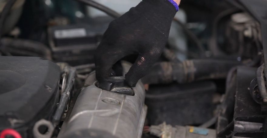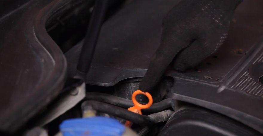 - Откручиваем и вытягиваем масляный щуп и заливную пробку. Таким образом мы допустим воздух для лучшего стека старой отработки с картера.