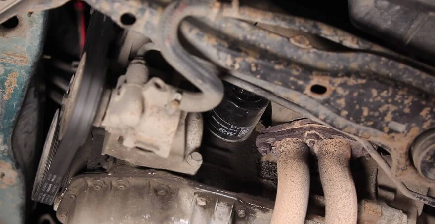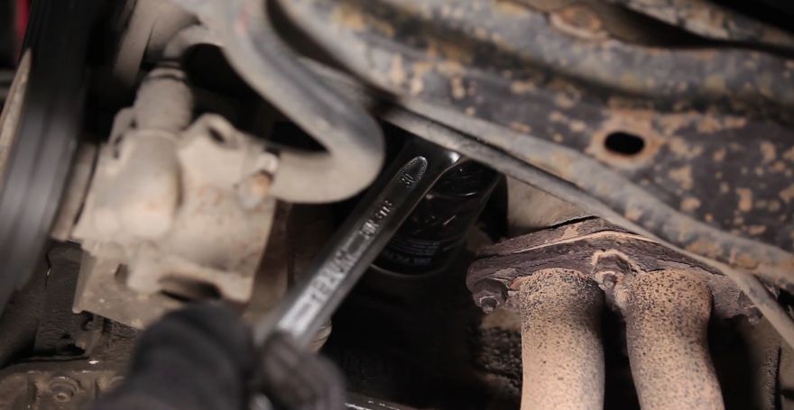 Замена масляного фильтра не требует съемника — понадобится накидной ключ на 30. Ослабив затяжку фильтра, его можно открутить от руки, при этом прольется немного масла. Пере обратной установкой нового фильтра нужно сделать две вещи: смазать резинку на фильтре новым маслом и протереть посадочно место. Подтягивать стоит не больше четверти оборота, как только появится сопротивление при закручивании.