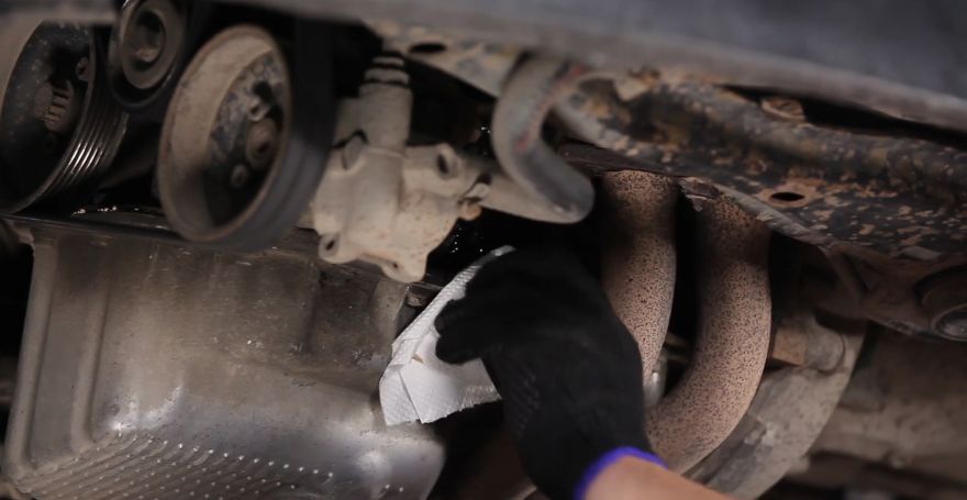 Под масляный поддон или фильтр нужно подставить емкость, в которую будет сливаться масло.