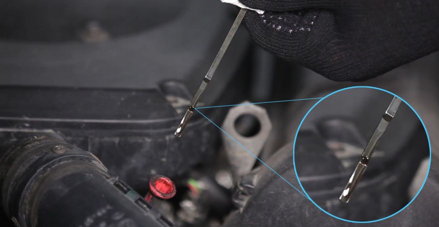 - продолжаем доливку, уровень на щупе должен быть посередине между отметками MIN/MAX,
