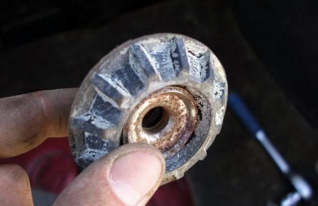 - Когда я заменил амортизаторы, стук слева пропал, а справа нет. Только через неделю я вычитал, что верхняя опора — тоже сайлентблок. При разборе я это не заметил (резинка внутри), думал просто опора.