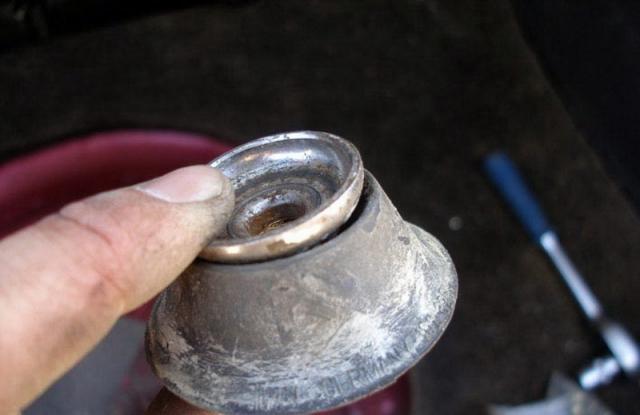 Шайбу достали, теперь можем пыльник снять, отбойник и пружину.