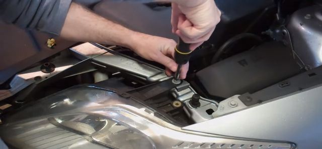 Аккуратно двигаем фару вперед. На ее нижней грани есть пластиковая защелка.