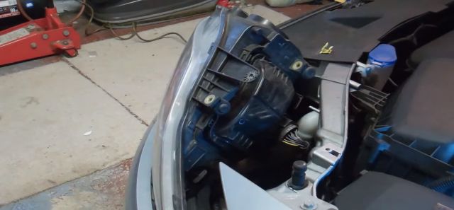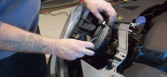 15. Извлеките лампу дальнего света из отражателя блок-фары.
