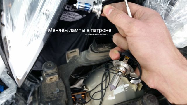 Новую лампу следует установить сразу в гнездо фары, а затем подключить разъем питания. В остальном, установка происходит в обратном порядке.