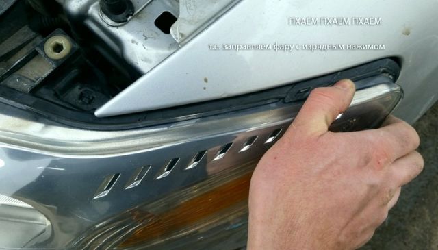 Установка фары в обратном порядке. Но она ни чуть не проще чем само снятие поэтому покажем несколько иллюстраций как правильно установить блок фару, дабы ничего не повредить.
