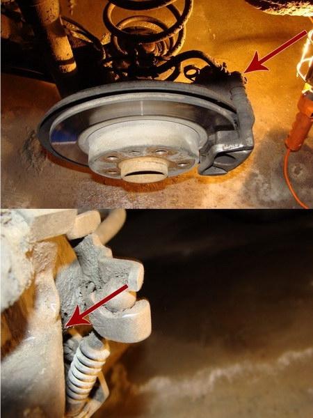 - Повторить процедуру с опорной стойкой задней тормозной колодки.