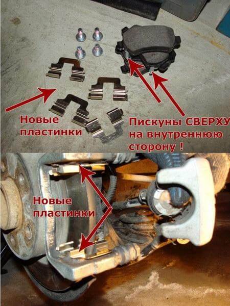 Если в комплекте с колодками идут новые пластины, меняем их. Если нет — чистим и ставим старые.