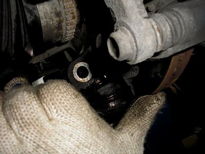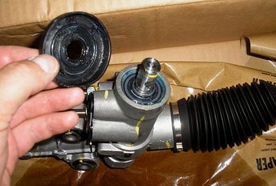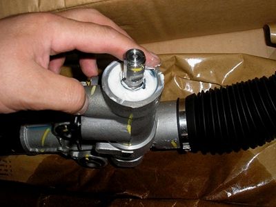 • На новой рейке вынимаем пробки-заглушки из отверстий штуцеров шлангов гидроусилителя, устанавливаем ее на подрамник и производим сборку в обратной последовательности.