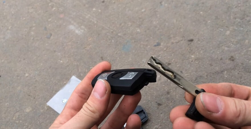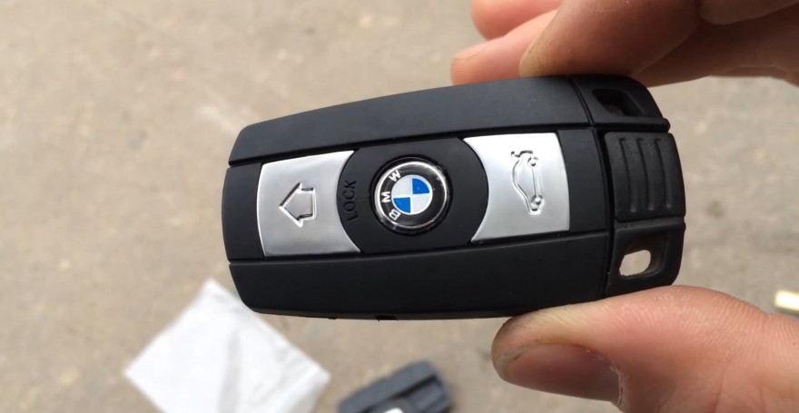 В оригинальном ключе BMW стоит аккумулятор, а не батарейка. И будьте аккуратны, не пораньтесь, разрезая корпус ключа!