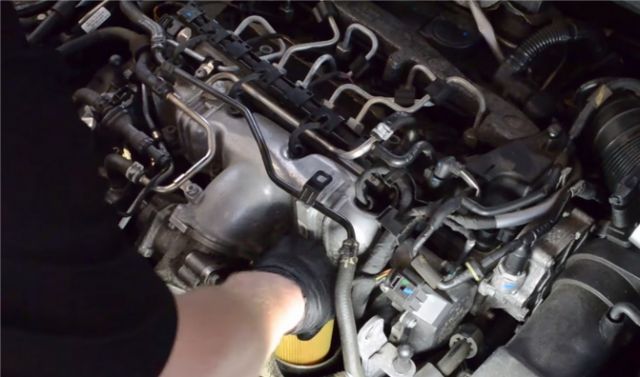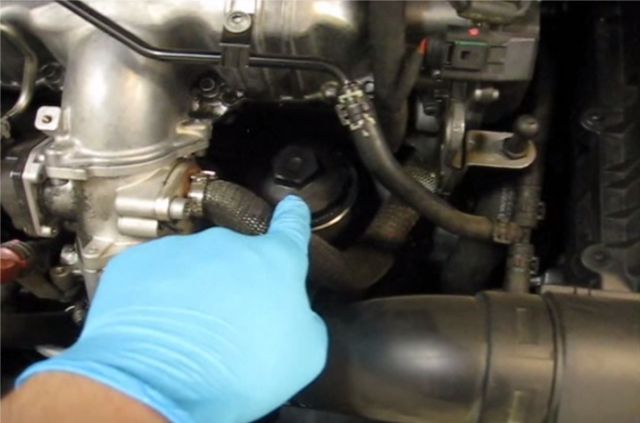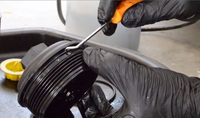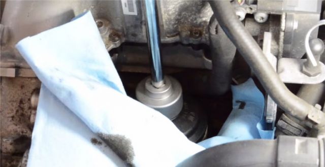 Слить оставшееся масло с фильтра, затем заменить картридж (фильтр. элемент) и уплотнительную резинку. Новую резинку стоит смазать свежим маслом, и фильтр можно установить в обратном порядке. Момент затяжки 25 Нм.