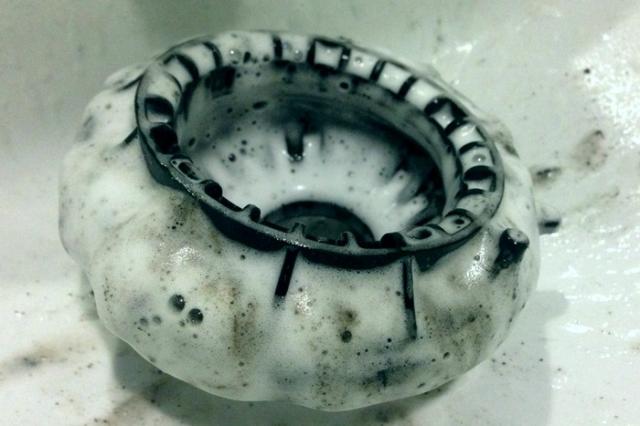 Выкладываем все детали опорного подшипника и сушим. Перед сборкой осматриваем кромки пластиковых деталей на предмет задиров и неровностей. Если есть нулевой наждачкой зачищаем.