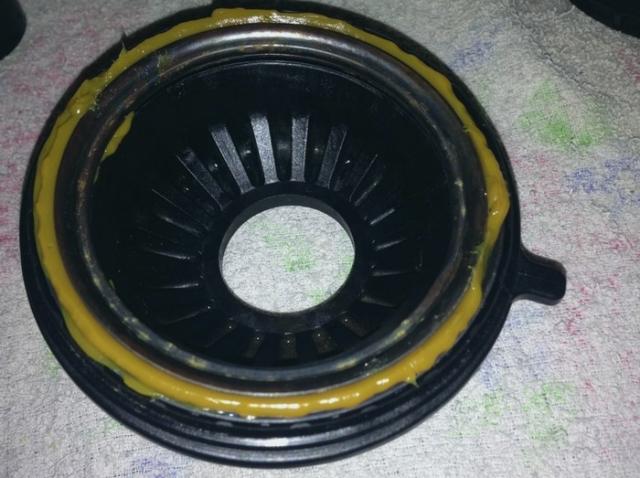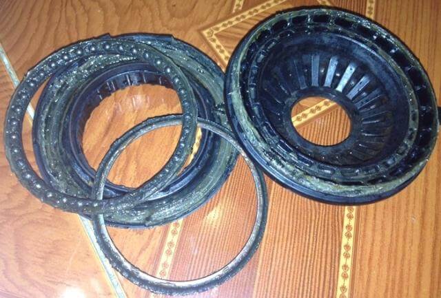Узел опорного подшипника стойки амортизатора достаточно уязвимый элемент на Ford Mondeo 4 (чаще всего происходит закусывание подшипника). Опорник можно без проблем разобрать (верхняя его часть держится на защелках). По этому если опорый подшипник стойки вышел из строя и появились характерные звуки, то можно попытатся еще дать ему вторую жизнь и восстановить его путём промывки и обновлением смазки.
