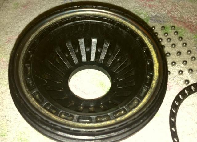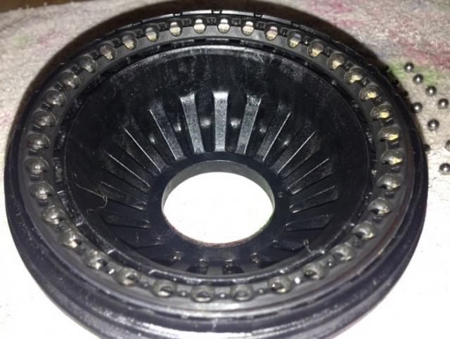 Конструкция подшипника. Между двух железных желобков находится пластиковая обойма в которой вставлены 36 шариков. Их нужно перебрать и почистить.