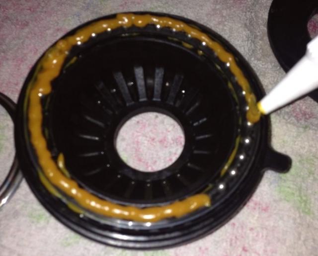 Выдавливаем по кругу на направляющее кольцо смазку.