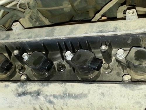 - Открутите болты крепления катушек зажигания и снимите катушки (запомните последовательность установки катушек зажигания).