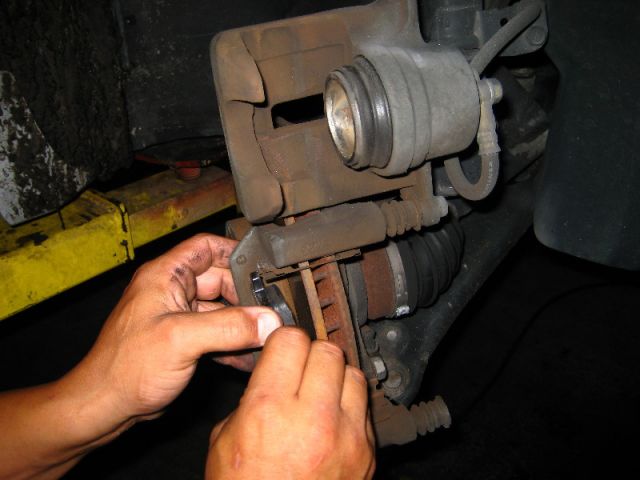 - Затем начинаем снимать старые тормозные колодки.