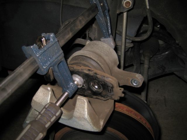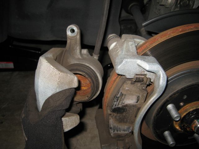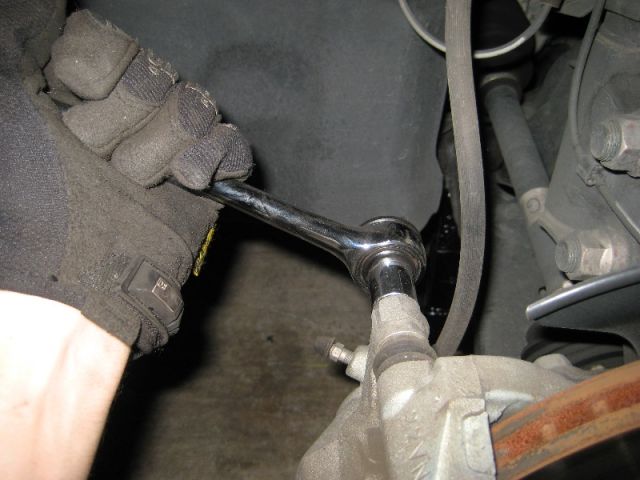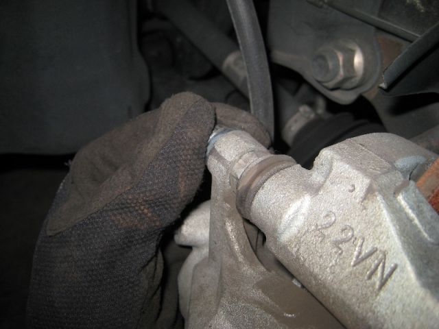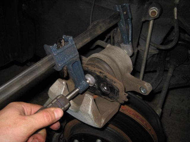 Снять тормозной суппорт и положить или подвязать его таким образом, чтобы шланг не был внатяжку.