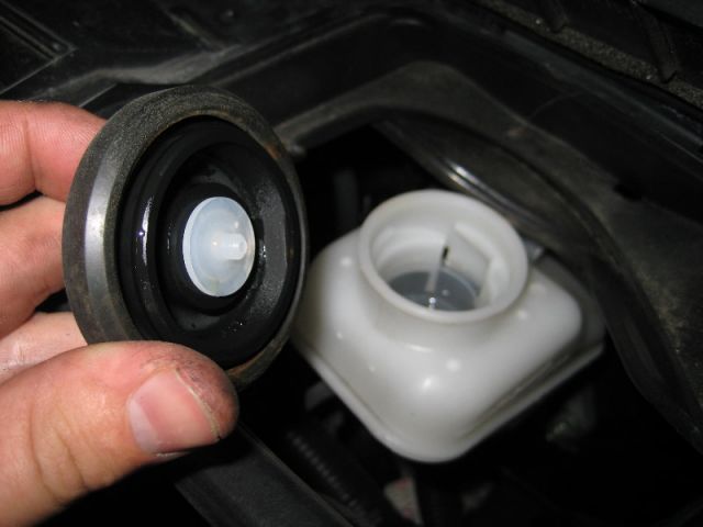 Перед тем, как вжать поршень суппорта, надо открутить крышку бачка тормозной жидкости. Если он заполнен до верху — жидкость может пролиться, поскольку уровень будет подниматься по мере вдавливания суппорта.
