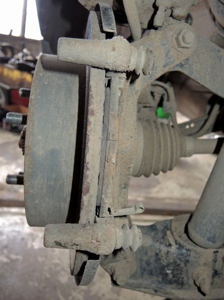 Всё как всегда). Срываем болты, поднимаем автомобиль, снимаем колесо и видим вот такую картину.