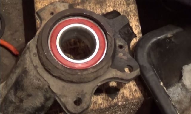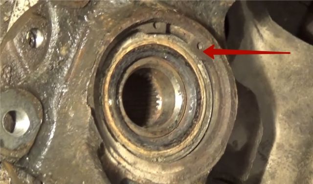 Перед установкой нового подшипника очищаем его посадочное место в поворотном кулаке от грязи и смазываем стенки литолом.