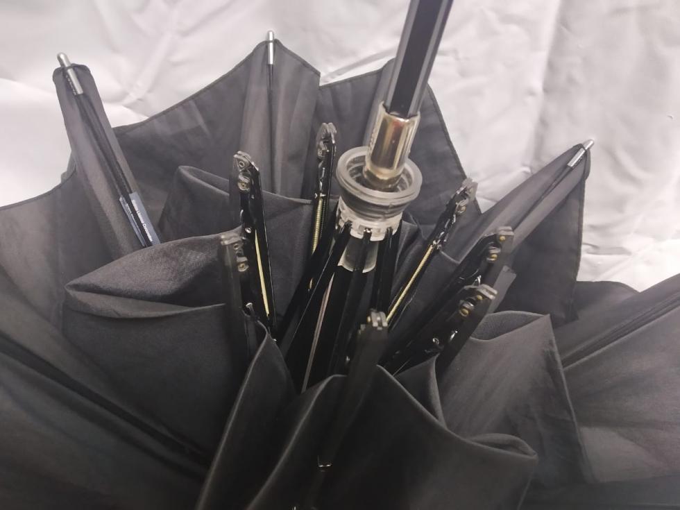Примечание: компенсационные пружины – есть у зонтов с механизмом полный автомат и у зонтиков с автоматическим закрыванием (складывание купола). Служат для противодействия силы пружины (3) в момент раскрытия купола, а также участвуют в его складывании при нажатии на кнопку. Необходимое и достаточное количество этих пружин рассчитывается производителем на каждую модель зонта. Число пружин (10) зависит от размера купола и используемого материала. Компенсационные пружины могут быть не на каждой спице, и как мы уже отмечали, их количество зависит от модели и определяется производителем. Отсутствие на спице компенсационной пружины не является дефектом. К примеру: на зонтах с ручным открыванием этих пружин нет.